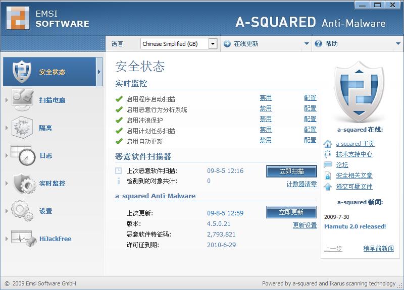 回复:瑞星全功能安全软件2010不兼容a-squared Anti-Malware