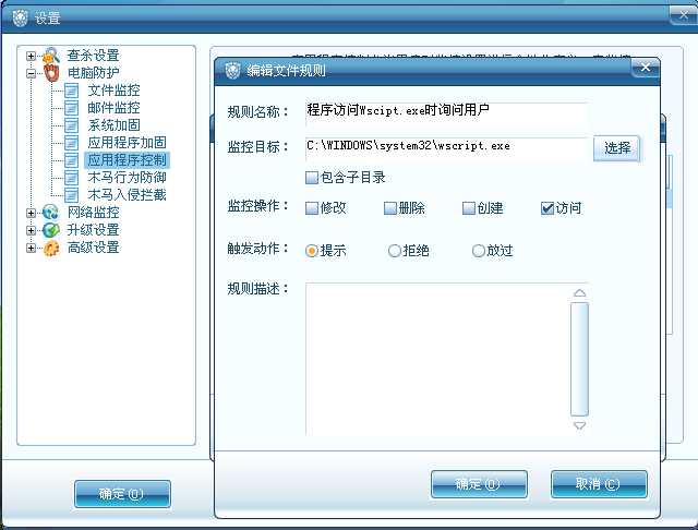 1、由于此毒通过wscipt.exe访问网络搞鬼,所以事先这样设置了RIS2010的网络监控,试图能有机会拦截此毒: