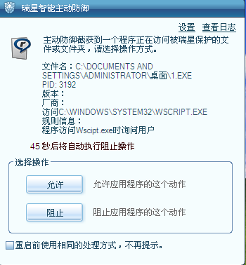 刚试了一下。用RIS2010的“应用程序访问规则”可以解决这个问题(前提是:用户可以正确判断病毒与正常程序对wscript.exe的调用并予以正确的回应)。