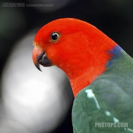 下面的这张鹦鹉图,色彩虽然艳丽,但由于红色过于饱和,却丢掉了许多细节。通过降低红色饱和度,就能得到一张比原来细节丰富的图。可见,色彩要用的恰当,不是越浓越好。