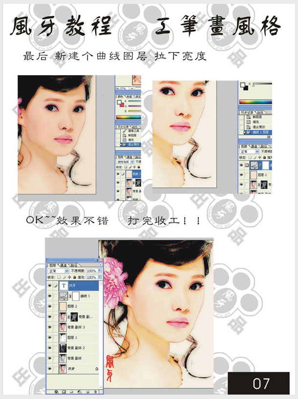 回复:卡卡PS大学堂——第16课 把美女照片变成人物工笔画