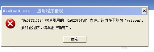 2.经常出现“ravmond.exe出现错误需要关闭”,接着就是“内存不能为written.”。