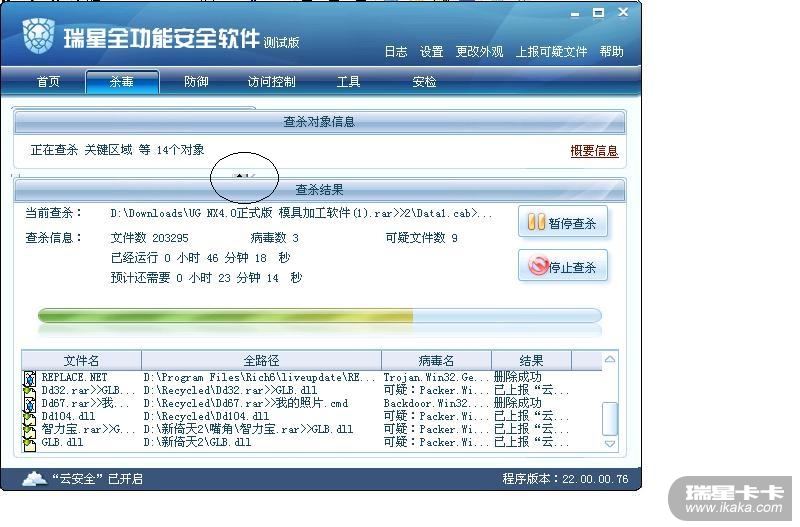 在杀毒的时候,点击“概要信息”。瑞星2010软件会出现不良反应。