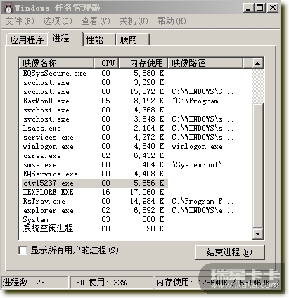 1.使用目前还是绝对主流的xp3系统,测试系统默认进程数为21个;