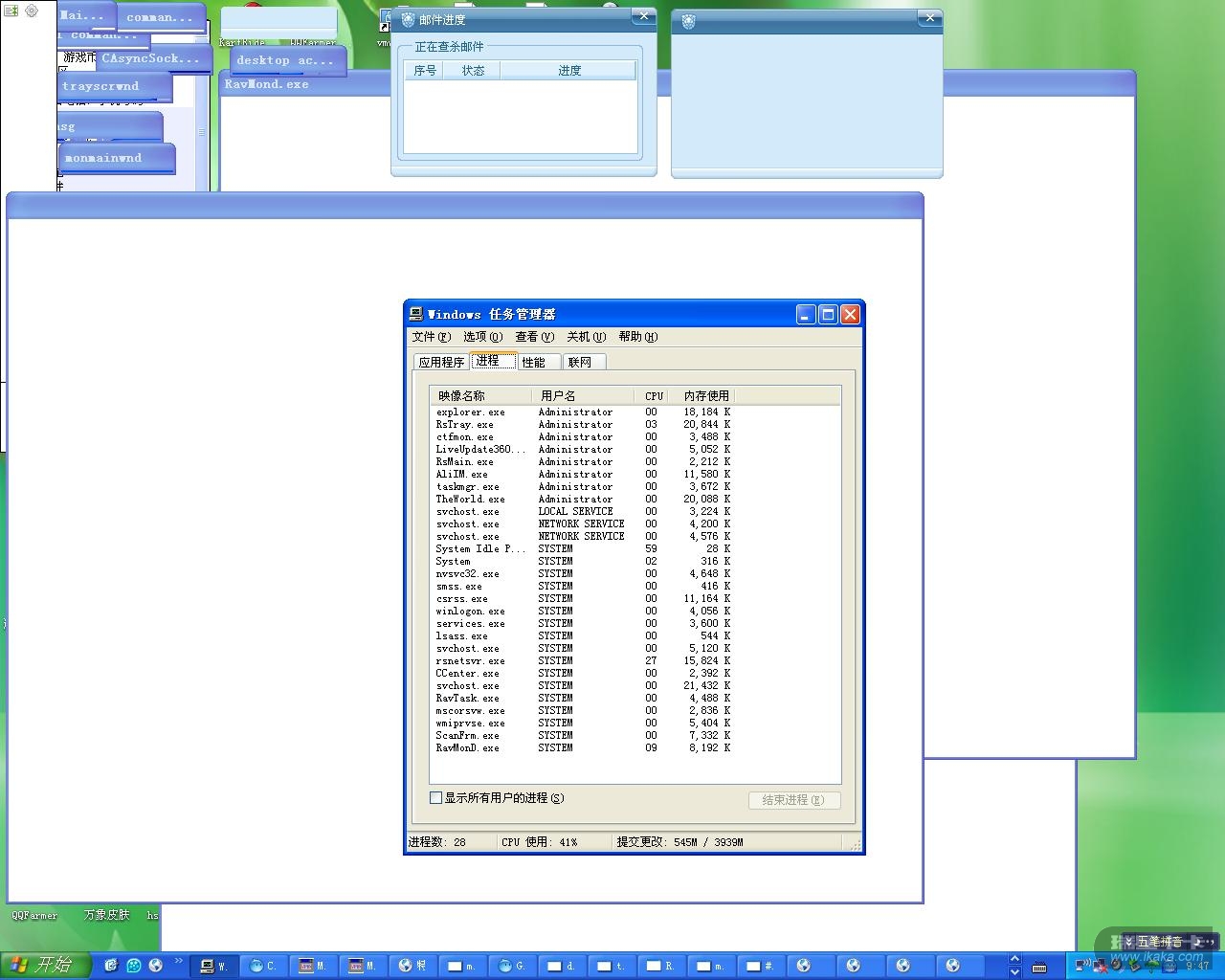我好好的在看电影,突然就这样了,关也关不掉,注销了下,还是有两个关不了,应该是瑞星的问题吧