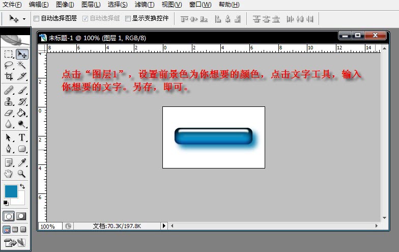 7、点击“图层1”,设置前景色为你想要的颜色,点击文字工具,输入你想要的文字。另存,即可。