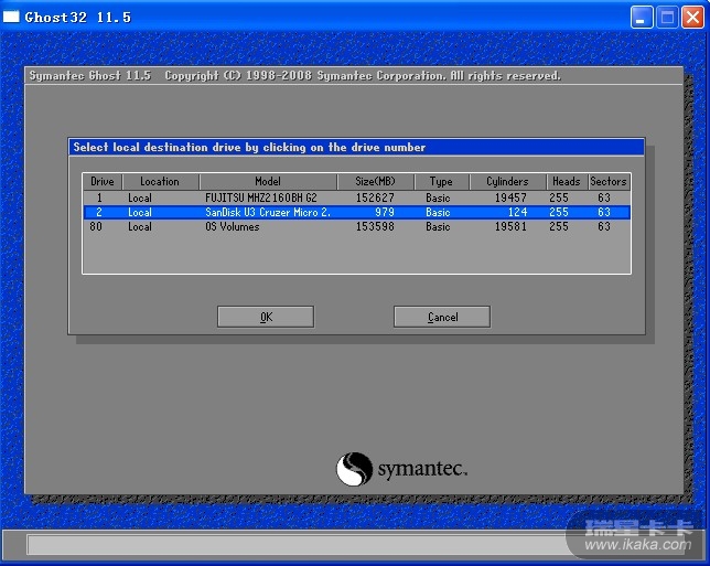 从源镜像中选分区,Ghost可以从整个硬盘的镜像中恢复单个分区,但备份gho不是,所以只管OK好了。下面是最关键的一步千万不要错。选择要恢复的硬盘