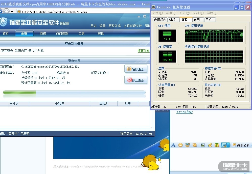 [求助] 2010查杀我的文档cpu占用率100%内存只剩7mb