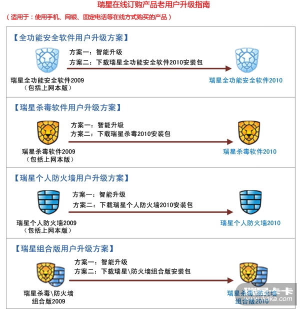 瑞星老用户跨版本升级瑞星2010版必看宝典!适用于:使用手机、网银、固定电话等在线方式购买瑞星产品的用户。
