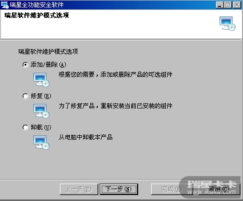 1)打开【开始】菜单,选择【程序】--【瑞星全功能安全软件/瑞星杀毒软件】--【添加删除组件】