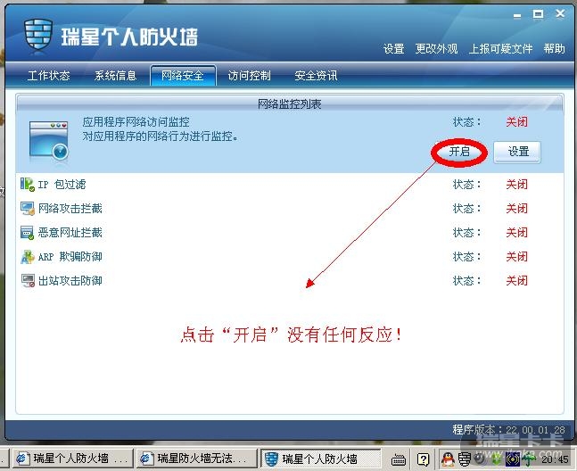 [求助] 瑞星防火墙无法启动!启动时出现错误!修复没用!