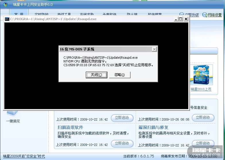 而升级瑞星时出现如图,而且是一闪而过,根本看不见升级过程,