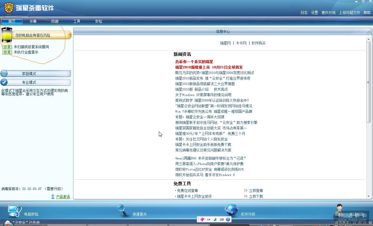 但是一打开瑞星杀毒软件,老是显示"我的电脑含有潜在风险".