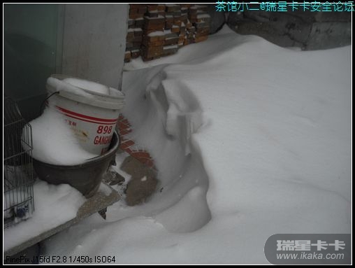 找了个小人儿做参照物,一米四的小人儿、小狗儿和垃圾桶啦、车啦~另外一个小区的QQ,车门直接被雪堆上了,另一辆桑塔纳是上半部分直接被雪埋了,瑞雪兆丰年啊~那么完美的结晶,是老天的祝福吧?