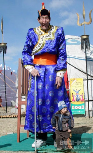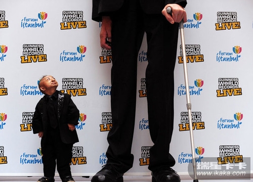 2010年1月14日,土耳其伊斯坦布尔,世界最矮人何平平(身高74.61厘米)与世界最高人苏丹-科森(246.5厘米)共同出席吉尼斯世界纪录组织举办的活动。