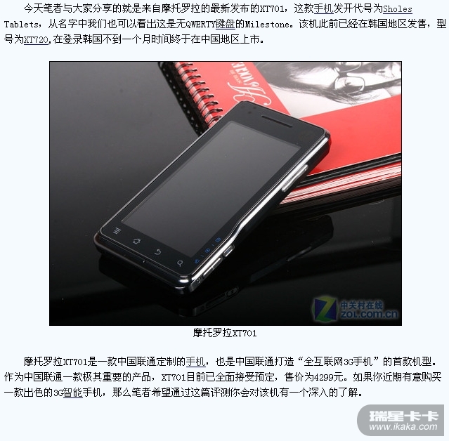 不输"里程碑" 中国联通精彩在沃 摩托罗拉XT701评测
