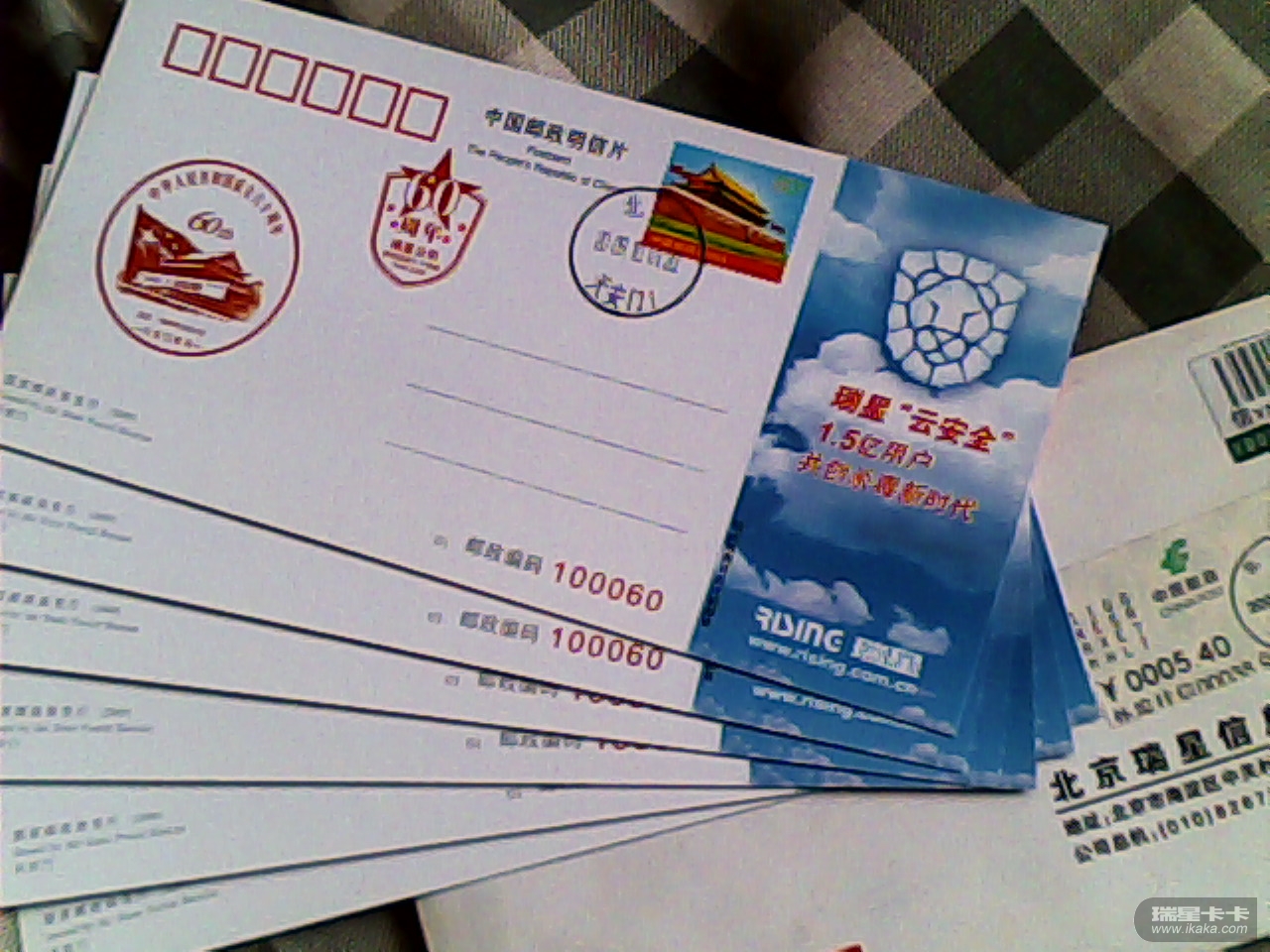 最有纪念意义的,建国60周年瑞星特别版明信片,天安门邮局,10月1日当天特别邮戳呀