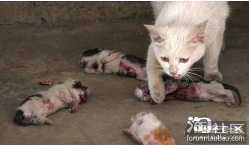四只小猫被人虐待而死,并且放在母猫面前