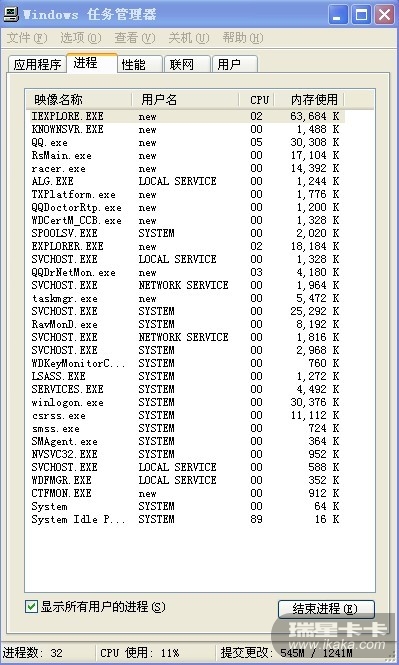 下面是我目前的进程项,瑞星卸载重新装的,还未装防火墙,不知道有没有问题