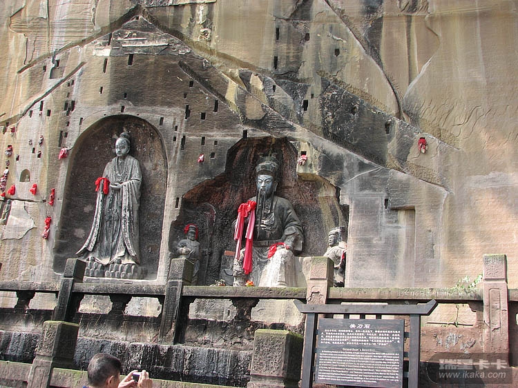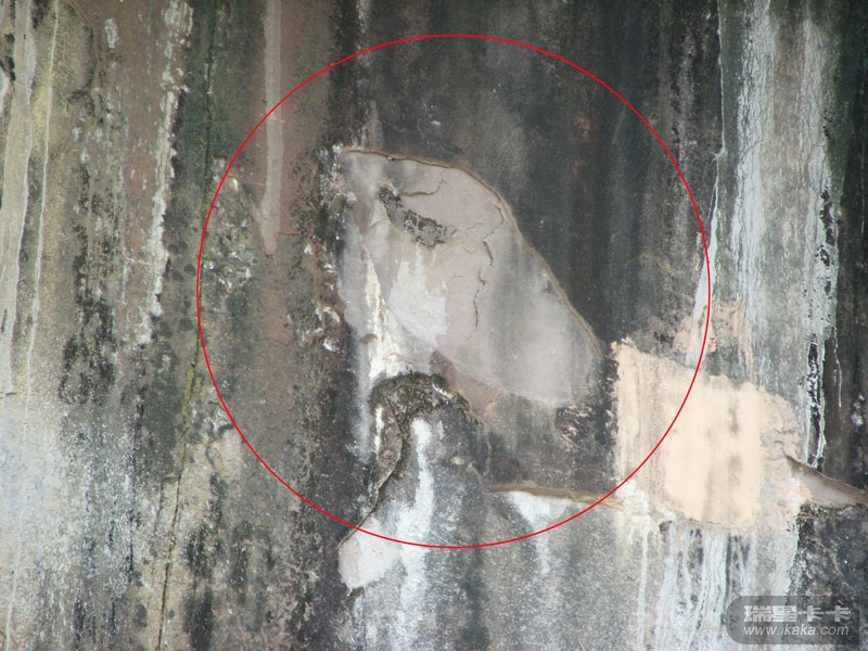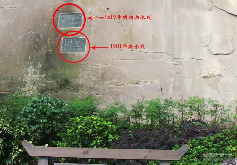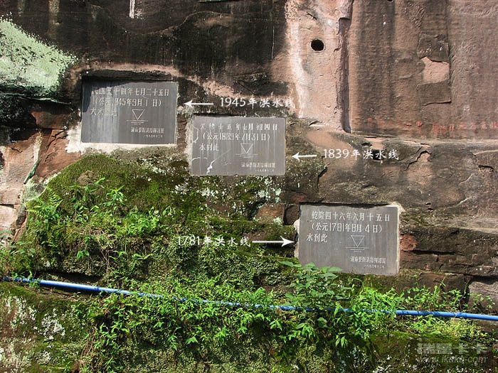 因大佛寺建在涪江边,这里千百年来曾遭洪水洗劫过多次,下面两幅照片,是部分记录的洪水线,我用箭头和文字作了说明