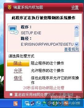 涉及的其它软件版本:瑞星防火墙22.22.04.40