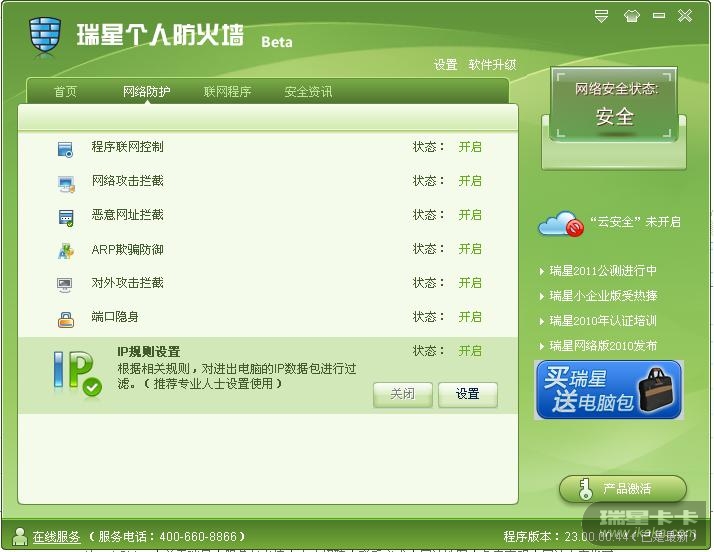 在网络防护功能中,所有功能开启后,却无法关闭。关闭按纽好像是灰色的!