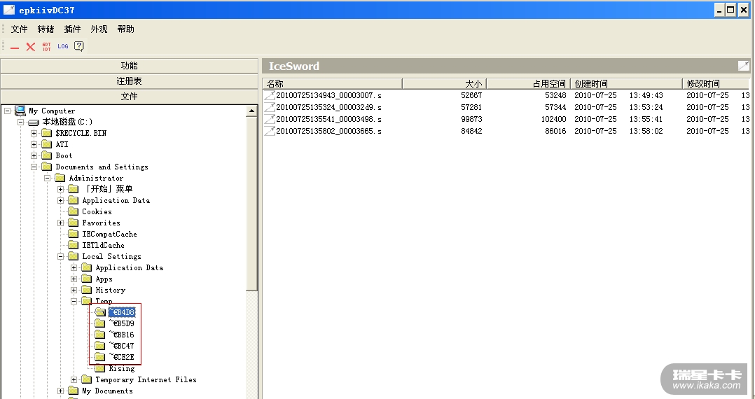 3、用IceSword强制删除%temp%目录下的病毒文件(见图4红框):