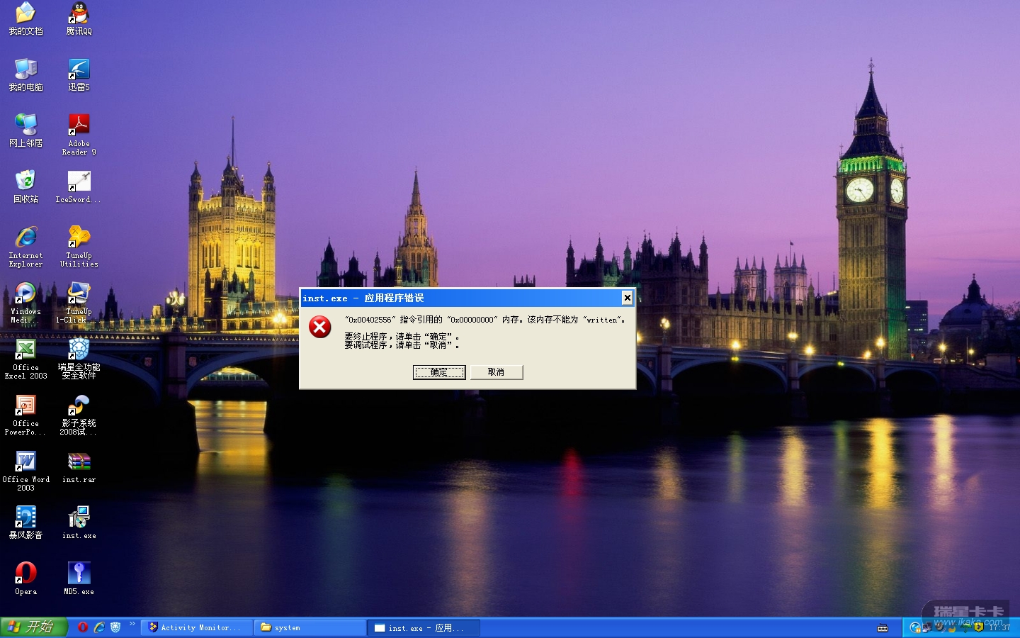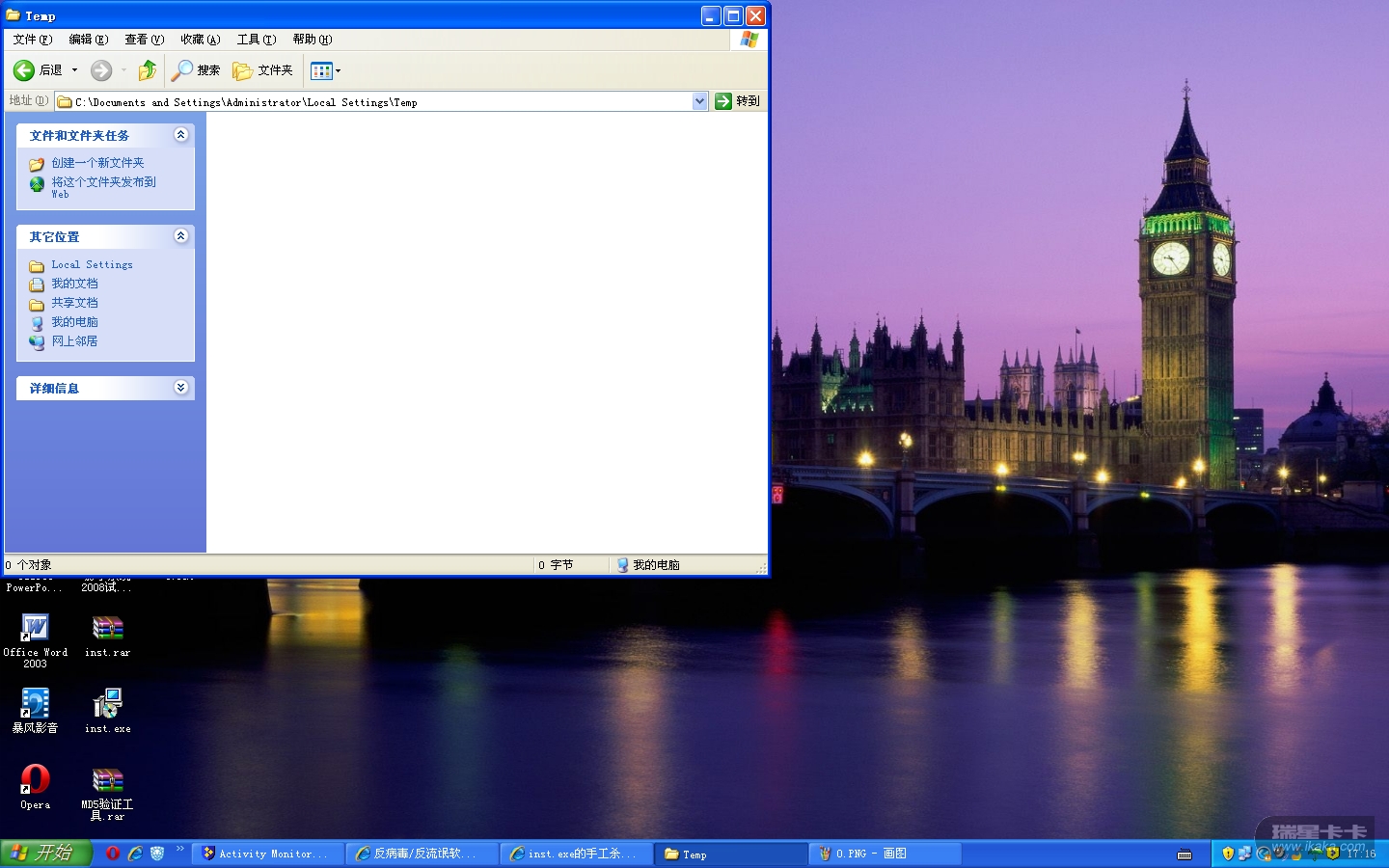 下图是“一锅端”之后,双击病毒程序inst.exe的结果: