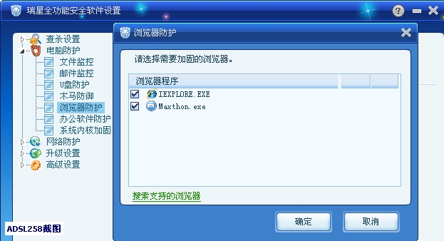 但在“浏览器防护”里面却只要2个,“搜索支持的浏览器”也搜索不到世界之窗浏览器。