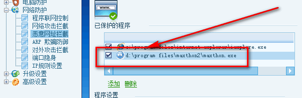 问题现象:恶意网址拦截不识别傲游,导致“恶意网址拦截”和“程序联网控制”的设置失效。手动添加傲游后正常。