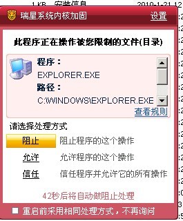 另外,建议瑞星能针对VBS修改IE首页的病毒增加规则。当发现更改之后,瑞星能自动恢复被修改的项目