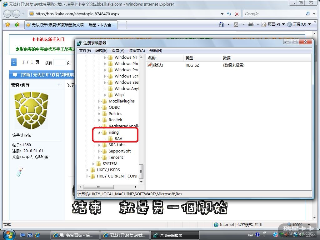 回复: 无法打开\修复\卸载瑞星防火墙.