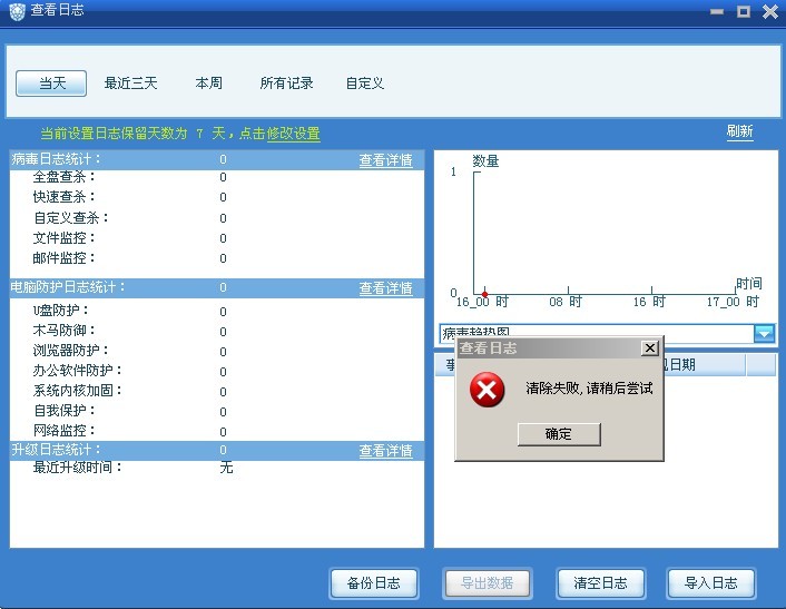 点击日志里的清空日志按钮,出现这个提示。瑞星已升级至最新:23.00.05.49。