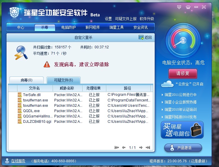 [其他问题] 瑞星全功能2011测试报告 (8月18日)