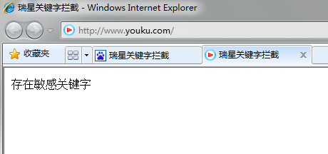 可是提示的却是“瑞星关键字拦截”,打开优酷,土豆网均如此
