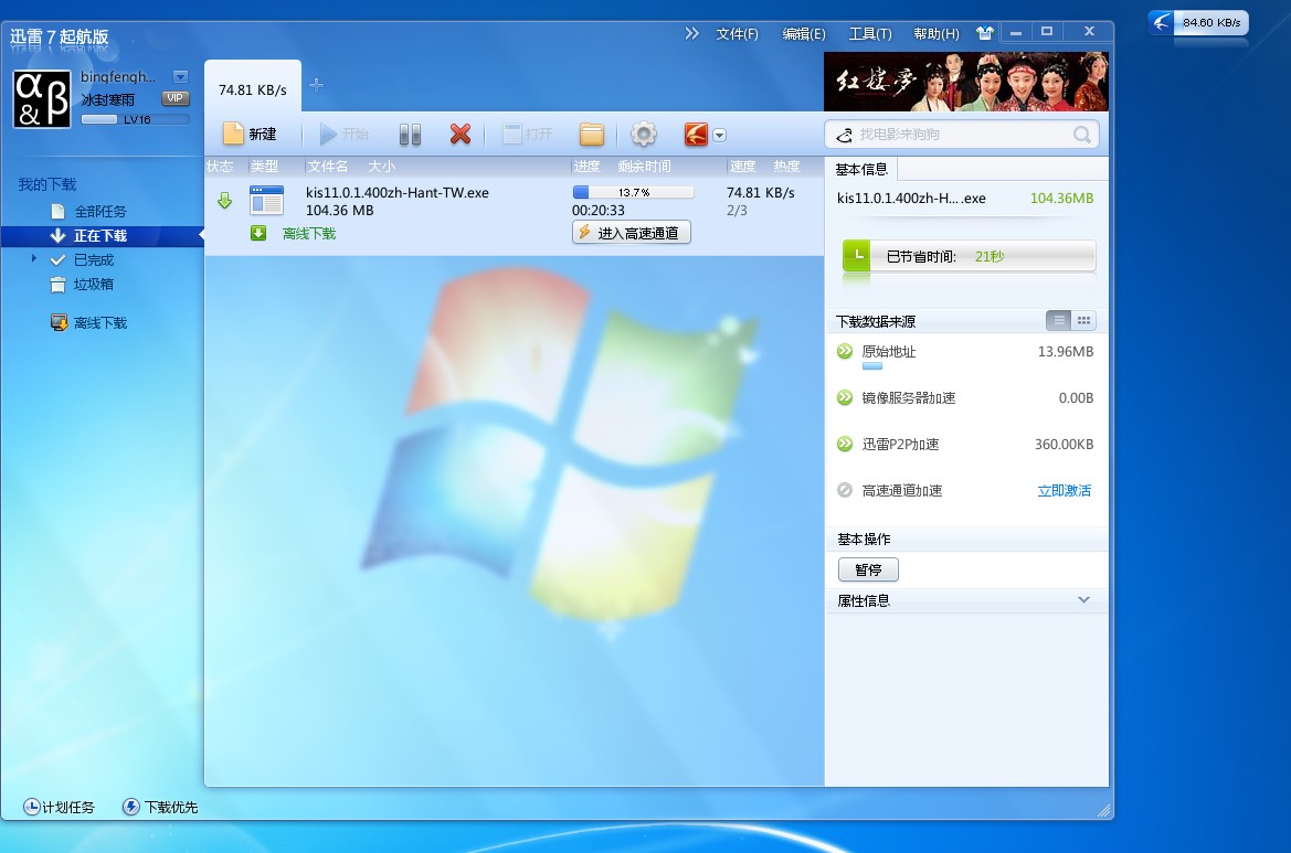 首先是安装包的大小,RIS2011的安装包大小为64M,一直变化不大。在同类产品中不算大,可以很方便的进行下载。而KIS2011此次安装包大小就不是很理想,超过了100M,因为我的网速并不快,所以用迅雷下了17分钟才把KIS2011搞定。