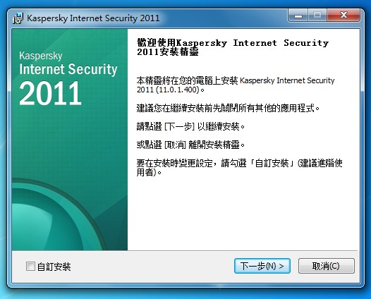 因为卡巴斯基全功能安全软件2011还没有官方的简体中文版,我用台湾繁体中文版来测试。