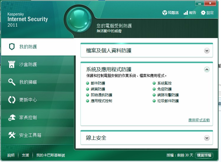 然后还有授权问题。卡巴斯基提供的试用只有短短的30天。