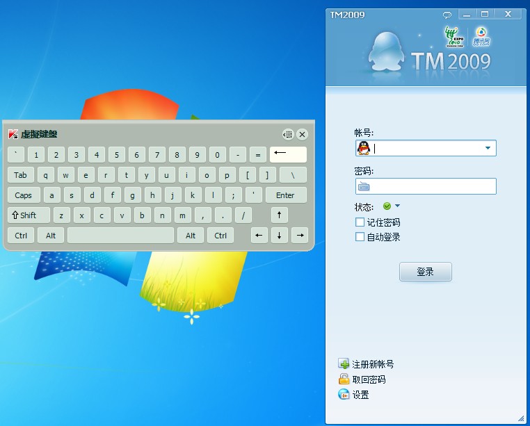虚拟键盘,可以保证输入的数据不被木马程序所获取到。使用虚拟键盘时,用QQ的截屏都截不到任何东西。