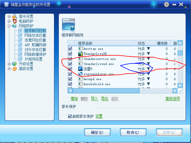 问题现象: Ris2011的防火墙模块(应该是程序联网控制之类的)监控打开时,迅雷不能下载文件。重装迅雷也没用,且程序联网控制中显示允许