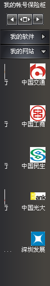 将保险柜停靠在屏幕左边后,切换到网页保护页,按上边的"->“这个按钮,慢慢点,网银的图标就向右缓缓移动