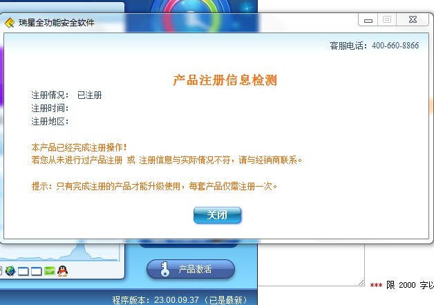 [其他问题] 瑞星2011刚安装完就早已激活,这是免费测试的时段?如何换成使用我的产品ID和列序号来激活?
