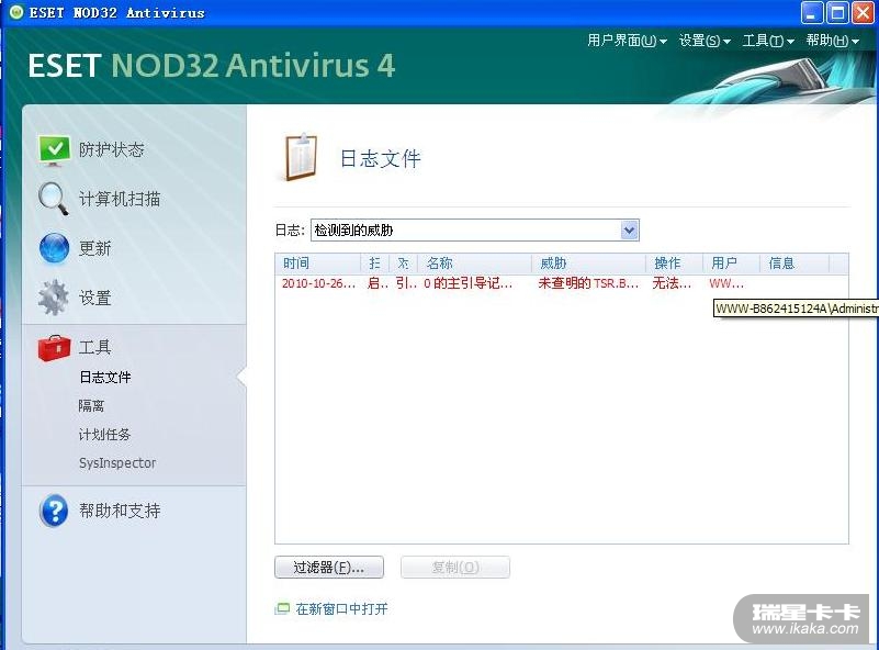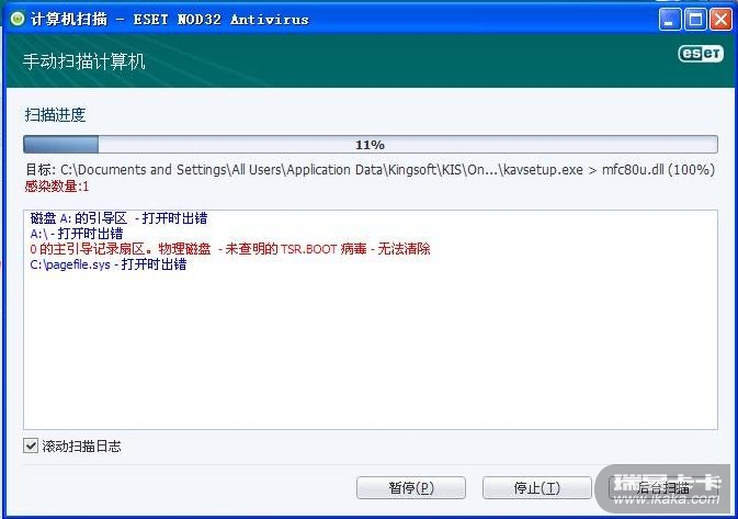 今天新装的系统,用NOD32查出的病毒无法删除,请高人看看是什么病毒,如何解决。