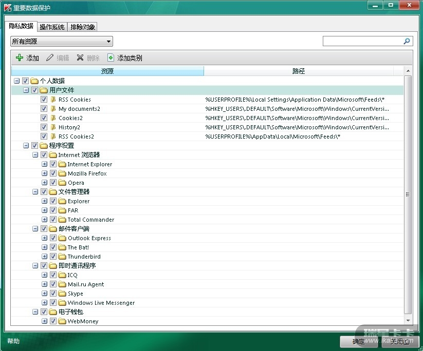 卡巴 保护了 一些应用程序的  设置文件 等 信息 ---希望瑞星也能保护!!!