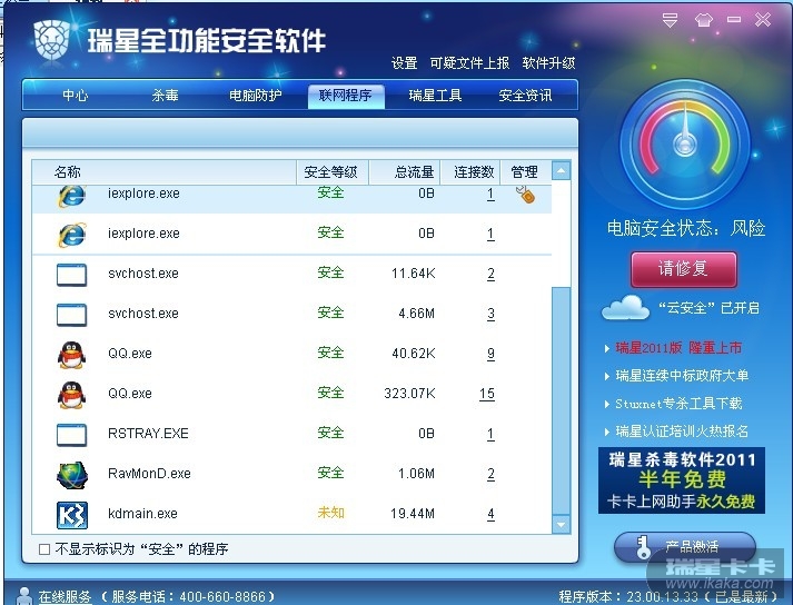 [求助] 求助, 金蝶K3为什么在瑞星安全等级中为未知