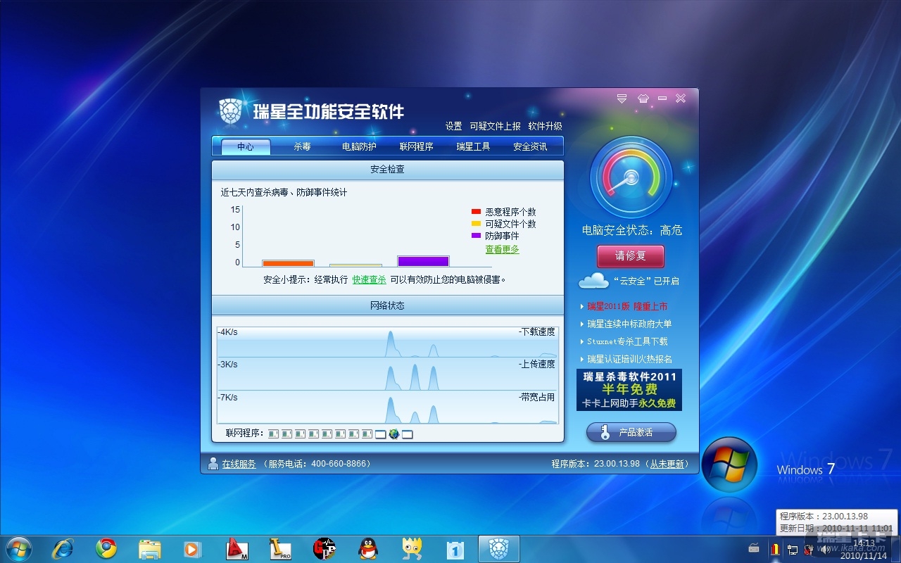 在上图中,请留意图片右下角处,当触犯IP规则时,鼠标悬停到瑞星图标上不显示规则信息了,且双击图标无反映。。。