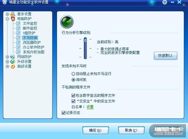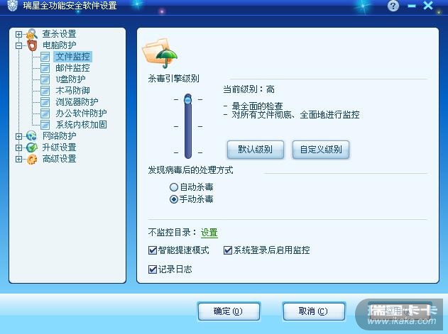 下面是我的瑞星的设置截图,请看。
