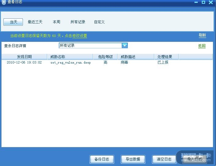 还有就是比如安装游戏的时候,我也找了一个比较大家熟知的游戏大话西游,我自己尝试安装,安装的过程中会发现病毒,我的瑞星设置还是上面那样,有的直接隔离了,安装目录里没有那个文件,有的却还在,但是中间没提示,都是必须通过日志还能看到,怎么不提示呢?然后游戏打开不正常。我又尝试关闭瑞星所有监控,安装后,打开游戏还是不正常,看下日志还是给定义为病毒了。