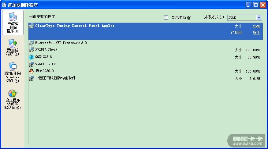 添加或删除程序原本是这样的,从中看到安装的程序