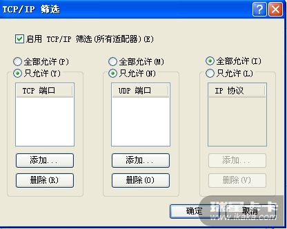 如图,,我已经启用了TCP/IP筛选,,在TCP 和 UDP没有添加任何端口,重启电脑